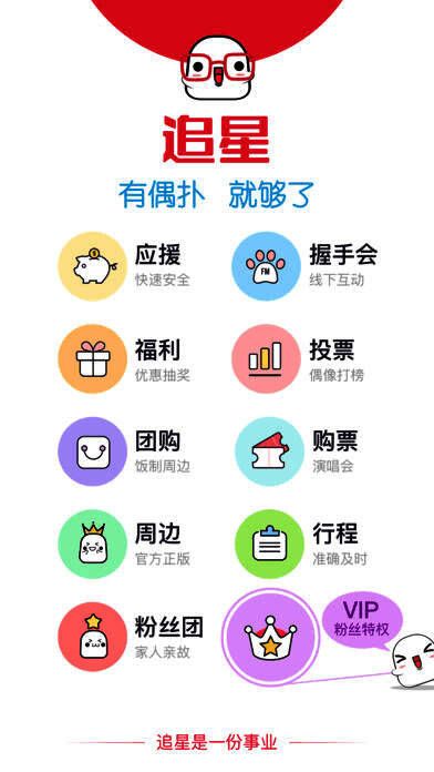 一款集精彩线上线下活动(粉丝见面会、握手会)、粉丝团应援、投票、互动、独家粉丝福利、周边、演出票、明星资讯美图视频资源等为一体的粉丝交流互动平台(APP+网站)。同时还有便捷强大的粉丝团管理、应援活动饭制商品发布管理、宣传海报制作等工具,帮助您轻松组织粉丝应援活动、制作分享与你爱豆有关的精美宣传海报,还有不定期的明星握手会,如果您有喜欢的爱豆,就来偶扑愉快的玩耍吧。