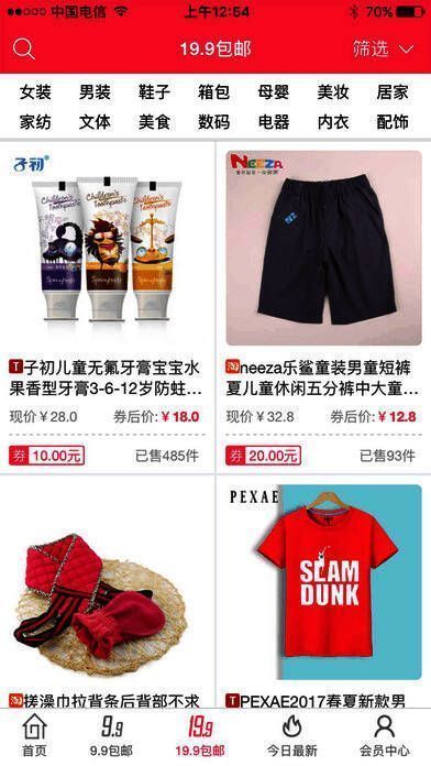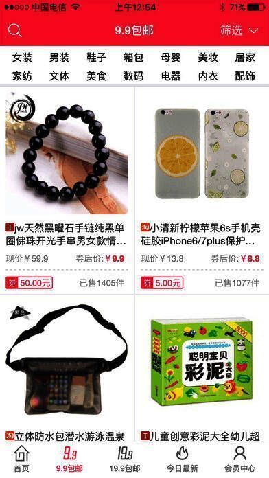 2、【折扣优惠】全场商品低至1折包邮,更有九块九包邮专栏;