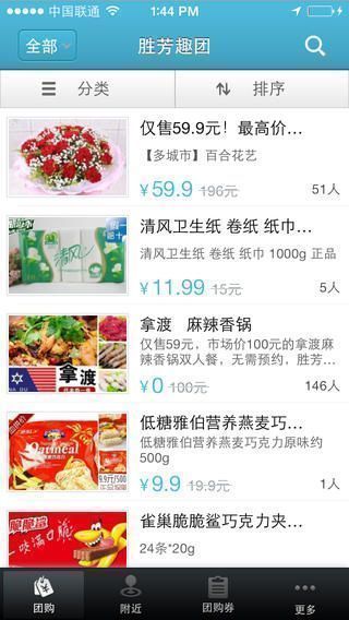2、团购分类排序,按团购内容分类刷选;