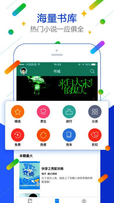 3、全面的小说类型:玄幻、都市、言情、武侠、科幻、军事、职场励志,应有尽有;