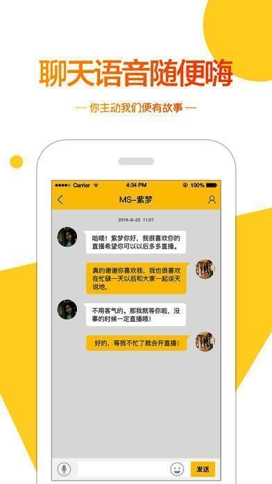 3、文字、语音一起嗨聊:发现喜欢的美女,除了1对1视频聊天外,可以发起文字和语音聊天;