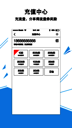 4、充值中心,流量充值一步到位;