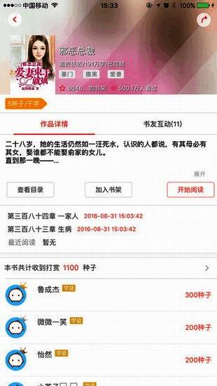 3、更有无数小伙伴一起讨论剧情,全程参与大神的小说创作。