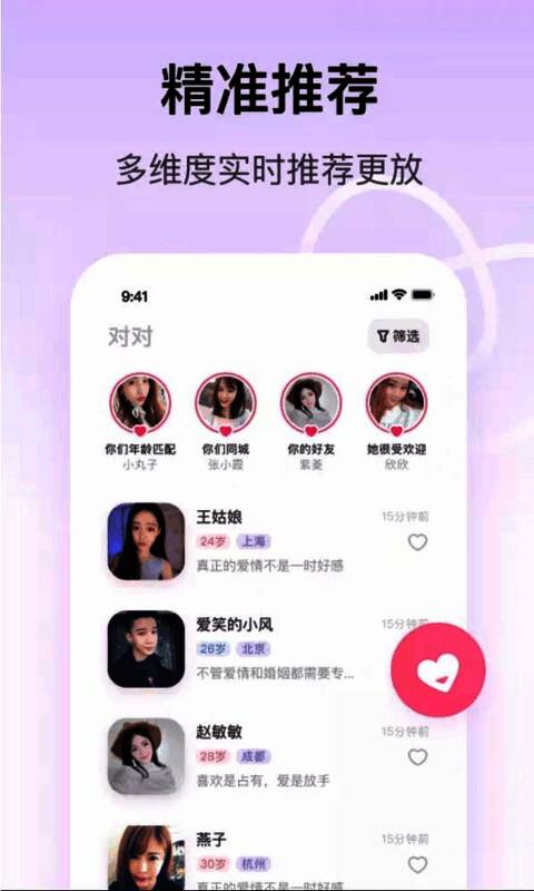 对对在软件中还强调,用户能体验到全新的视频交友互动玩法,让你高校的与同城的TA建立社交关系。给你全新的恋爱交友体验,在对对视频交友平台中,帮助你快速脱单,找到恋爱的对象。这个全新的社交社区会给用户们带来很多的惊喜,即使是很多陌生人也能在这里拥有沟通的话题去畅聊,而且这里给每一位用户提供了施展自我的舞台,有什么样的才艺都可以在这里表现出来!