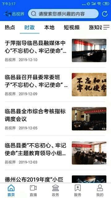 邑视界是一款专门为临邑县打造的手机新闻资讯服务应用软件。邑视界这款app上汇集了海量的新闻资讯,当地市民可以选择自己喜欢的新闻内容进行观看,更有图文,直播,视频等不同的阅读方式。并且平台有多种便民服务,你可以积极的加入到社区的活动中来,丰富了老百姓的生活!