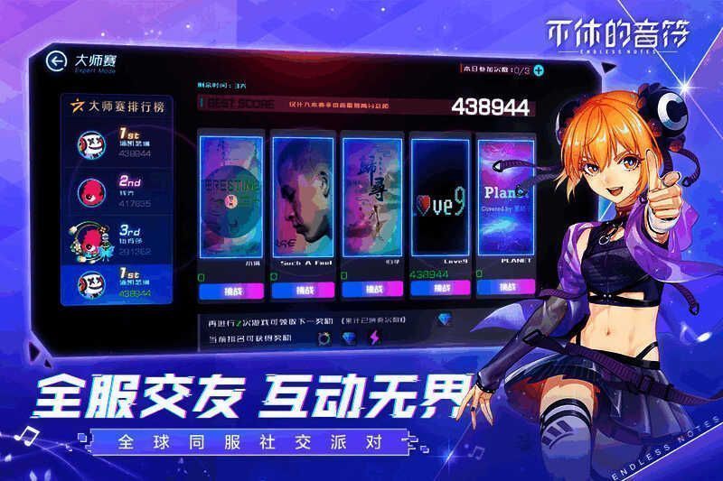 《不休的音符》一款玩法十分精彩的音乐游戏!这款手游节奏感十分重要,多样化优秀的丰富曲目供伙伴们自由选择,这里所有的歌曲都可以免费使用的;更有数不尽的热血关卡挑战等你来站,准备好了吗?大伙喜欢的话就请下载吧!