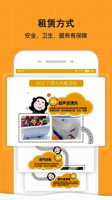 3、租用产品卫生保障,专业的国际幼儿园标准清洗消毒,无毒无害。