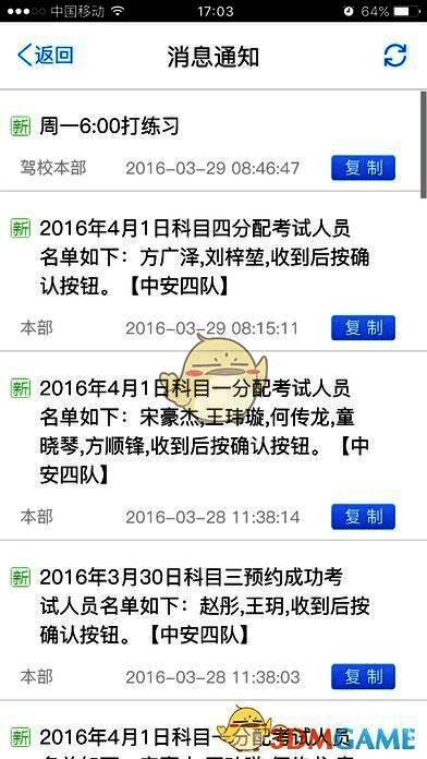 5.读取驾校消息:已报名驾校的学员登陆后可以查看驾校发送的消息通知;