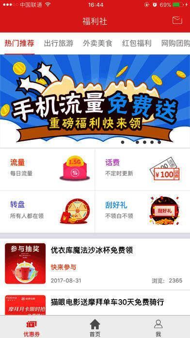 2、精选生活中最常用的优惠券,出行、外卖、电影 、流量话费、购物团购、旅行酒店,统统囊括。