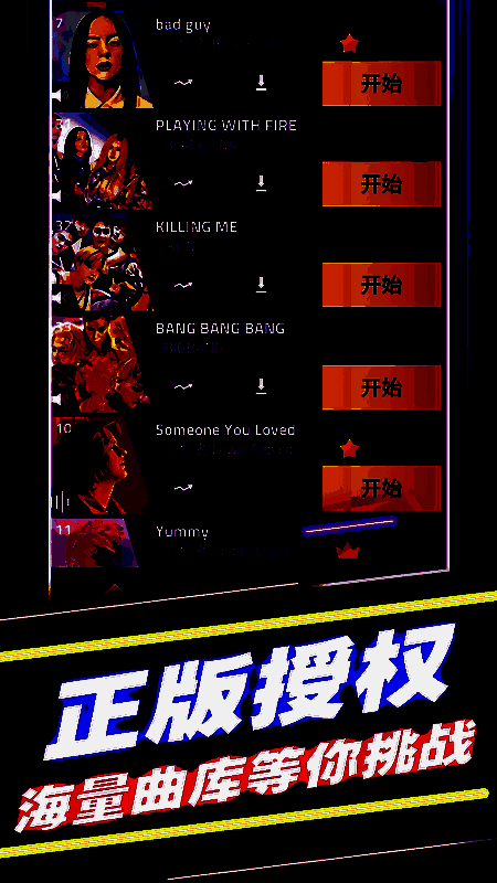 由多种音乐元素构成的界面为玩家提供了身临其境的挑战体验。