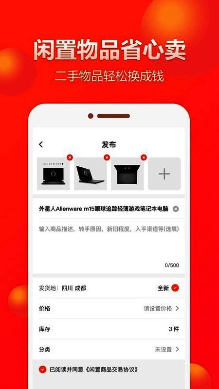 2、只要不是贴身的物件,都是可以在平台上来发布,售卖的,也会有全新的产品;