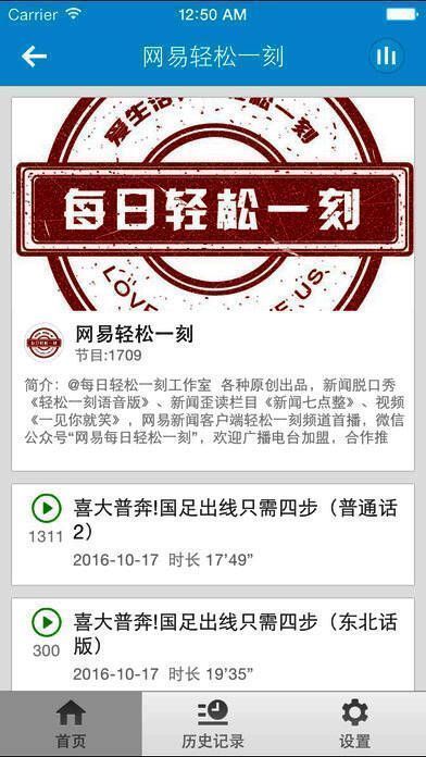 2、可在软件中查看收听历史记录,本地缓存,随时随地收听;
