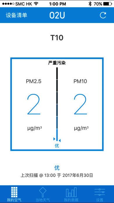 《O2U AIR》是优气检测表的手机端数据展示app,使用优气检测表可以满足用户对室内室外的空气检测要求,囊括了如固态及气态悬浮因子,花粉尘埃等有害污染物的检测,可满足用户的短期或长期使用。