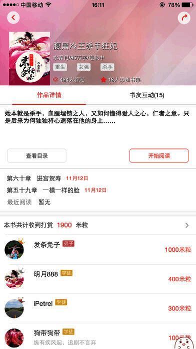 3、最全的社区功能,与大神面对面互动,更有无数小伙伴一起讨论剧情,全程参与大神的小说创作;
