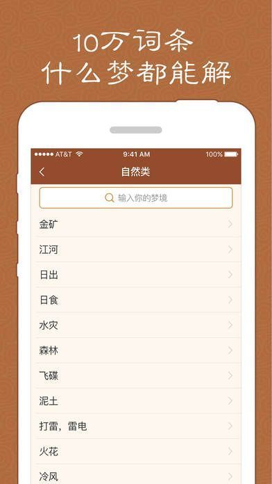 2、提供自然类,建筑类,鬼神类,植物类,动物类,身体类,物品类,情爱类,生活类等各种分类上10K+条梦境词语的解说;