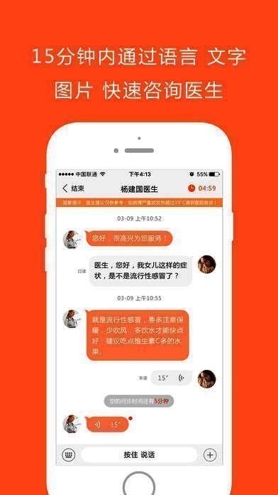 1、医生实时在线,60秒内快速接通;