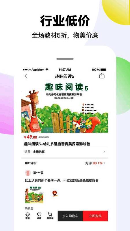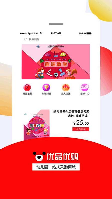 软件主要打造幼儿园周边的商品、教材、书包、玩具等等,优惠物美。