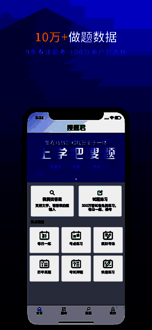 《搜题君》是一款智能搜题软件,软件内有海量题库,包含各行各业的题目,提供学习人士、工作人士的考试题目,更有热门题目每日一练,提高自己考试的通过概率,还有学习进度监控,实时了解自己的学习情况,对症下药,专练不熟知识点。