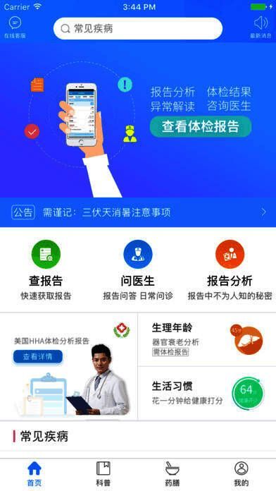 提供手机查询体检报告、疾病关键字解读、电话咨询医生三大功能;