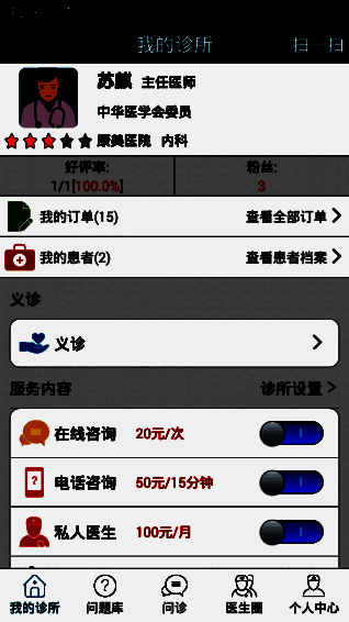 1、医生诊所:提供在线咨询、电话咨询、私人医生三种服务