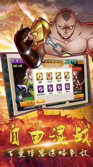 游戏酷炫合击大招,爽快战斗体验,军团BOSS厮杀,全服实时嗨聊,多样武将养成,丰富阵容搭配,福利多多,战力蹭蹭往上涨!