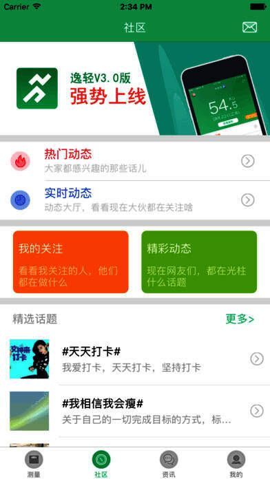 逸轻app是一款配合逸轻体脂秤使用的体质分析软件,提供体重、水分、BIM等各类信息,用户可以实时通过手机端观看各类数据,掌握身体的变化。同时还有健康资讯、减肥资讯学习。