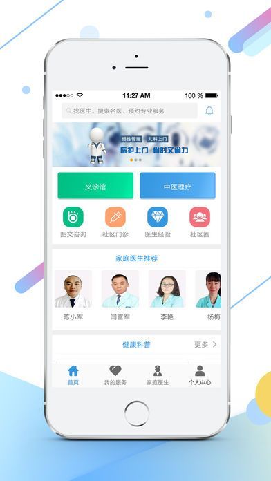 家有健康以家庭医生服务为核心,倡导“预防医学,医养结合”,从居民日常生活习惯、饮食结构等多维度提供优质医疗服务。