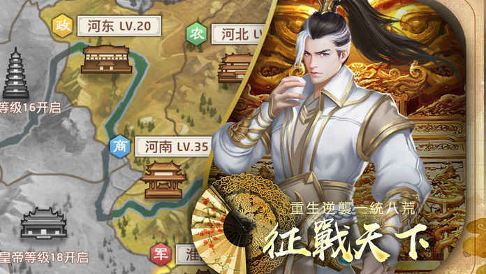 ——玩家将要走上一条千古名臣的养成之路。稳根基而后扩张,不但要招兵买马,指挥门客上阵杀敌,内政建设的大小事务也是一个官员的必修课,成为一代明君。玩家还可在宫中内一展才华,批阅各类奏章,处置军政赋税,定鼎古代王朝。在这个权利的游戏中没有剧本,一代雄主拼的是智慧和谋略,你是否有足够的能力成为一代枭雄?