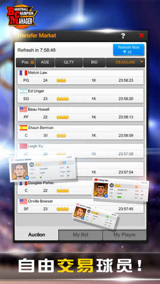 3、招募强大的明星球员,训练年轻球员,不断的问鼎冠军梦