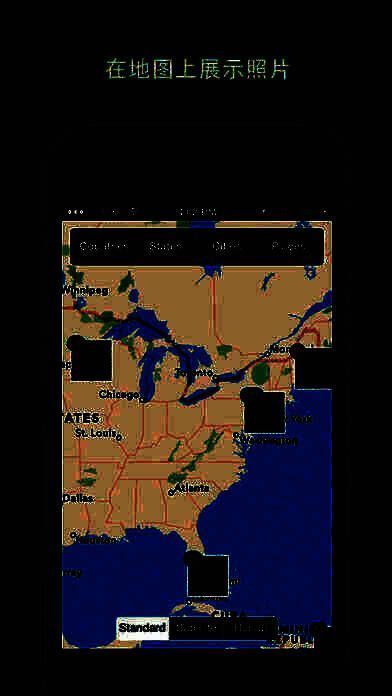 3、APP自动将所有照片的GPS位置信息提取后,分类为国家,省份,城市和地点;