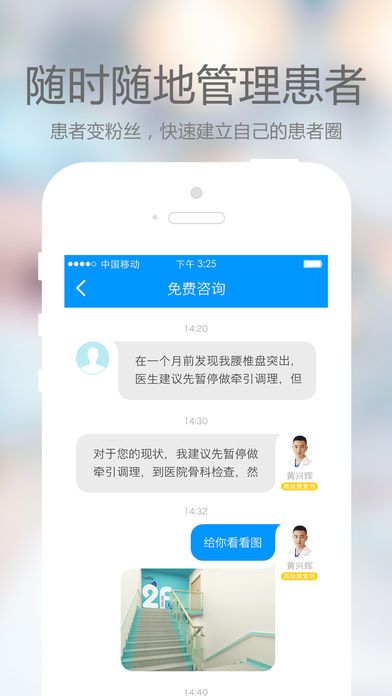 4、病患预约订单实时更新,就诊记录病例便捷管理。用户通过二维码扫描关注医生,建立个人知名度;