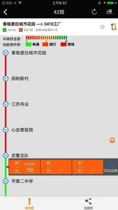 公交行app的数据很精确,只要输入公交线路即可轻松查询此线路中公交车的当前位置,发车时间,以及何时到站信息。