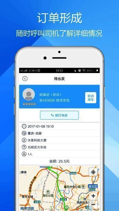 手机下单,预约车辆,查看司机位置;