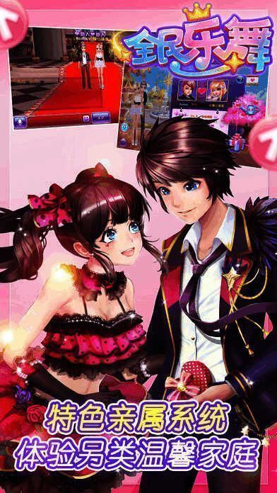 《全民乐舞》是一款强调群体社交竞技和次元恋爱的音乐休闲手游。在继承传统端游经典玩法上独创特色泡泡抢擂,透过指尖寻找爱情就是这么简单;同时海量潮流热歌,万千酷炫服饰,个性百变萌宠,唯美傲娇坐骑,随心搭配欲罢还休;开放式自由恋爱婚姻,超温暖即时语音聊天,朋友圈深度亲属社交让自己成为手机里的万众焦点!