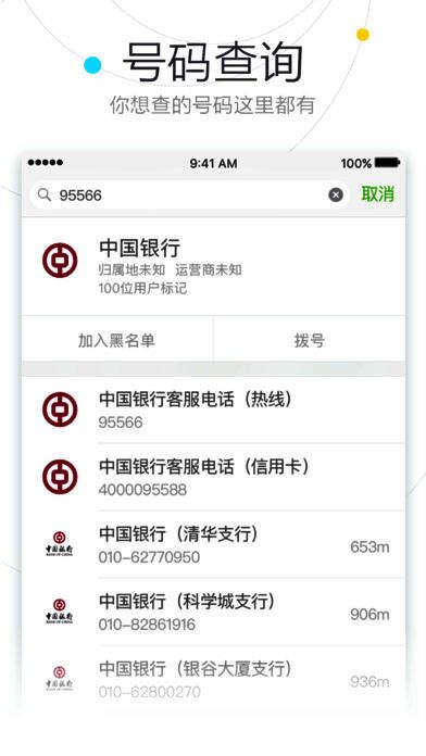 陌生电话识别:来电界面和通话记录中展示号码信息。