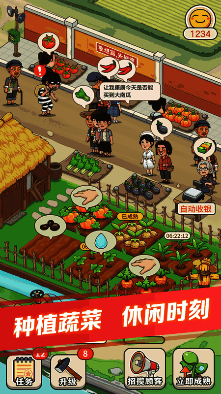 1.您将在自己的蔬菜市场完成所有任务,并收集更多的有机蔬菜出售。