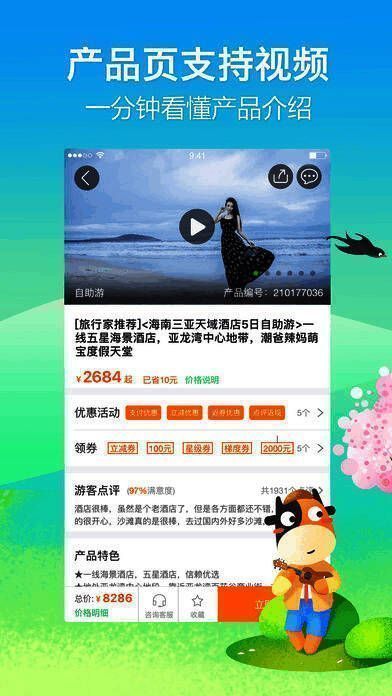 5、酒店:覆盖目的地国家和地区超过140个,提供国内海外600000余家酒店、客栈、酒店式公寓、钟点房和民宿的在线超低价预订,快捷预订境外酒店、特卖酒店、精品酒店、品牌酒店、五星级酒店,订酒店途牛更方便;