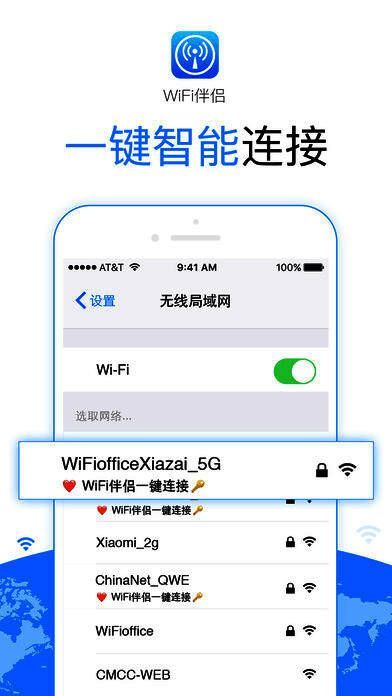 《wifi伴侣苹果版》是一款公共WLAN连接和认证的手机软件,用户无需帐号和密码,即可一键接入我们支持的公共WLAN,例如中国移动的CMCC网络。可让用户免费畅游网络。该软件绝不扣取任何流量与话费,不限时长,不限流量让你畅游移动互联网!