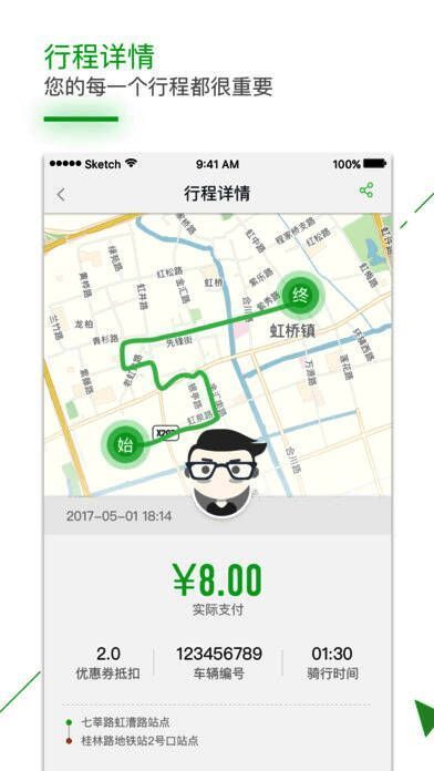 3、无桩限制,随借随还。无站点桩位限制,城市公共停车区域还车即可;