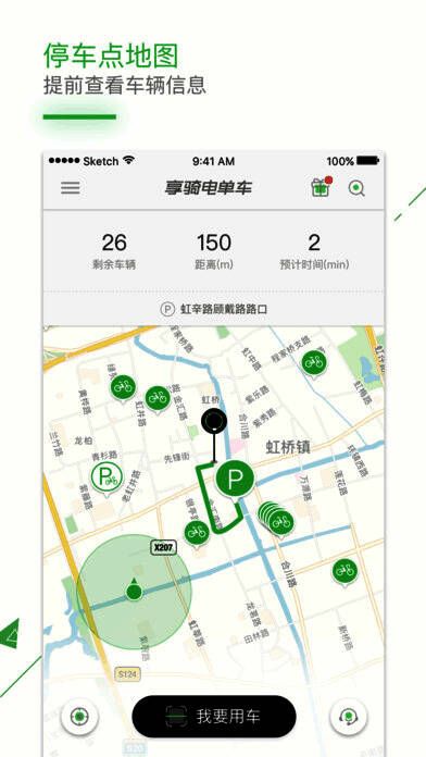 2、享骑出行是基于LBS(地理位置)的服务平台,用户可以使用APP即可完成借还车操作,用户到达站点扫描车身二维码点击开锁即可完成借车,随时锁车服务更加满足了用户的灵活出行。