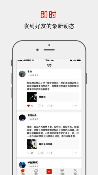发现和关注有共同爱好的朋友,就会第一时间收到内容更新通知,随时阅读与互动。
