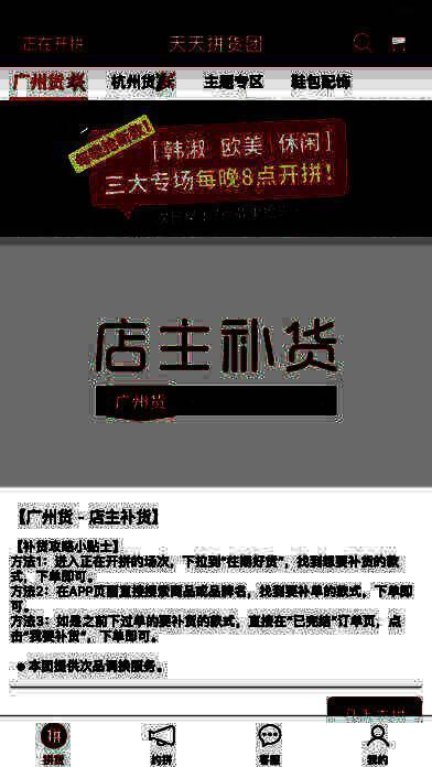 4、足不出户轻松拿货: 告别6点起床,车马奔波的拿货生活!打开天天拼货团app,动动手指选款进货;
