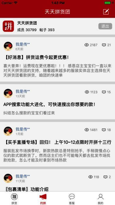 1、十三行天天拼货团是一款方便实体服装零售店主拿货拼货的app。是国内规模较大的实体店拼货社群,每天8点准时开团拼货。