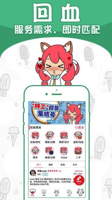 【回血服务需求】:cos绘画、道具摄影,cv妆娘,二手租赁,一键技能分享,平台自动匹配,坐等订单,宝宝不再担心吃土问题啦;