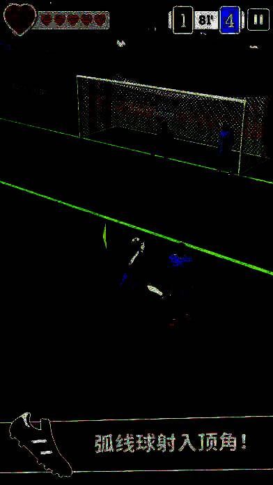 点球:两个顶角,两个底角,只要画出的弧线足够顶/底,,一个点球最多尝试四次必进。