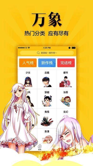 2、种类齐全任君挑选:国漫、日漫、美漫、完结的、热血的、恋爱的漫画统统搜罗,分类齐全,为爱漫画的你量身打造一个漫画天堂;