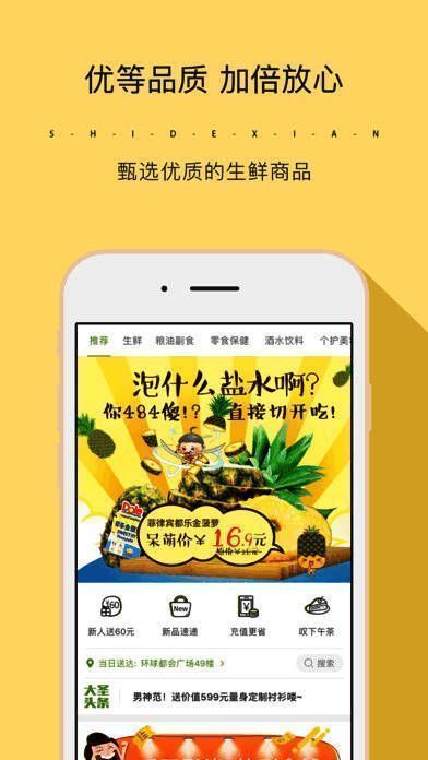 食得鲜,网上精品生活超市。结合线下体验店,用户可在线上下单,选择送货上门或到店自提;