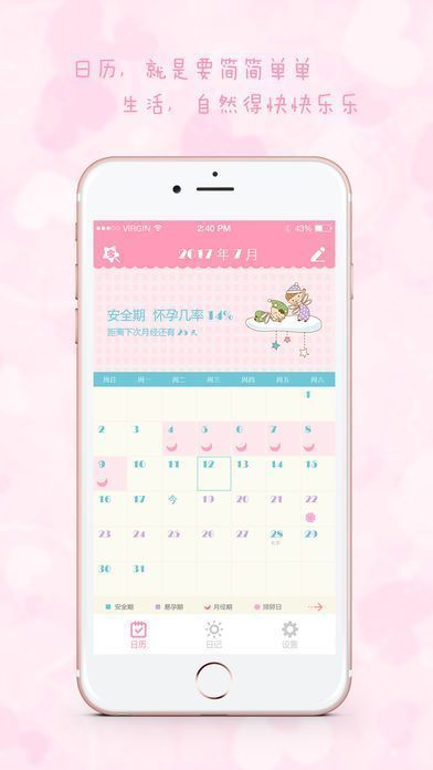 记录大姨妈,简单方便,再也不用每天记录,让女生日历帮你准确预测大姨妈的日子;