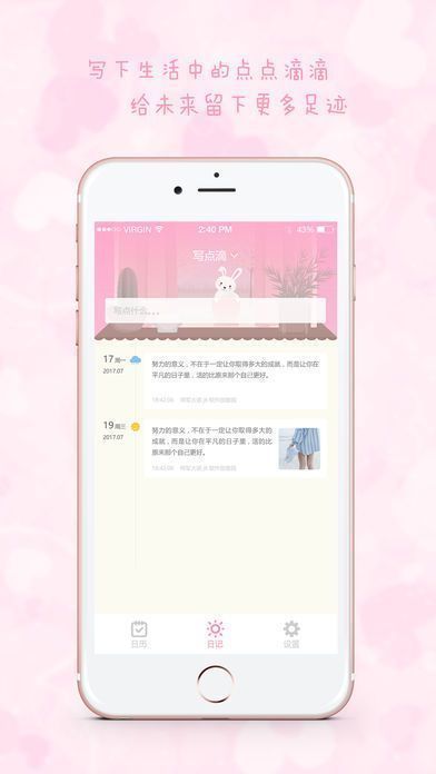 4、写点滴:记录生活点滴,来写一写今天的心情吧,每天记录一点,让点滴成为回忆。