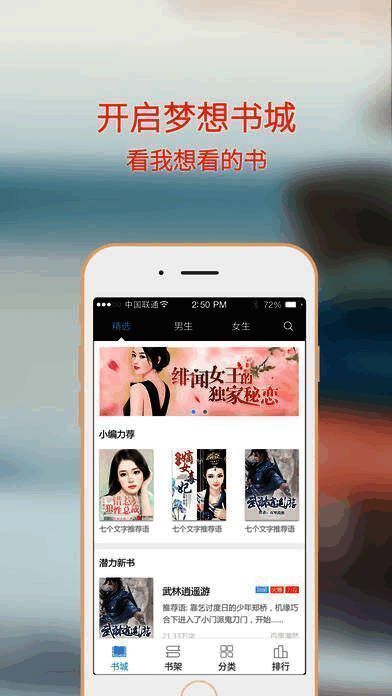 《梦想书城》为你提供海量优质网络小说,让你沉浸在小说的世界不可自拔!喜欢阅读小说的你千万不要错过这款软件哦,众多免费小说任你读,赶快下载软件开始你的阅读之旅吧!